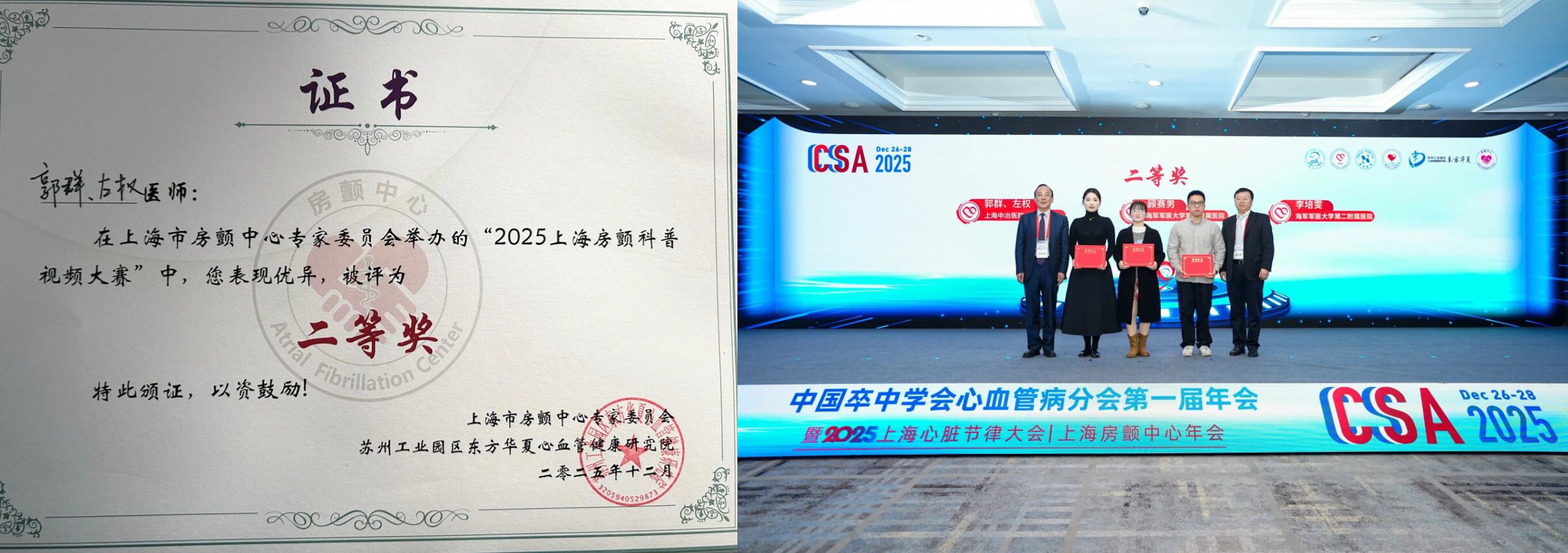 会议期间举办的“2025上海房颤科普视频大赛”中,上海中冶医院胸痛中心副主任左权与护士郭群的科普视频作品荣获大赛二等奖。
