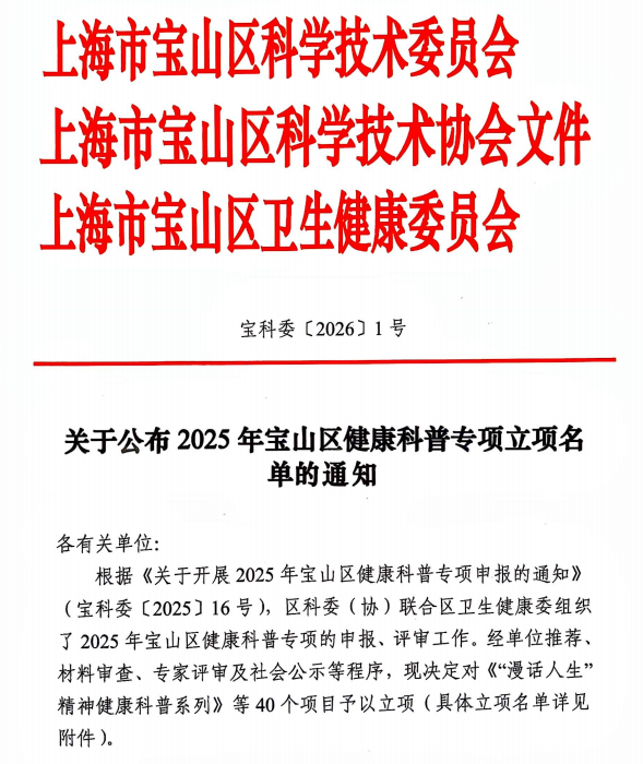 近日,上海中冶医院消化内科主治医师单忠宇申报的科普项目《护肝行动派:无“丙”的健康通关指南》成功入选2025年宝山区健康科普专项立项名单。