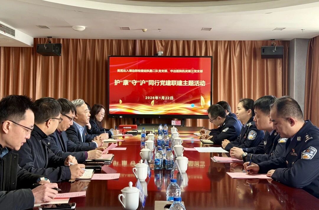 1月22日下午,上海中冶医院机关第三党支部与吴淞出入境边防检查站执勤二队党支部开展党建联建主题活动,携手推进基层党组织建设,促进双方资源共享、服务联动。